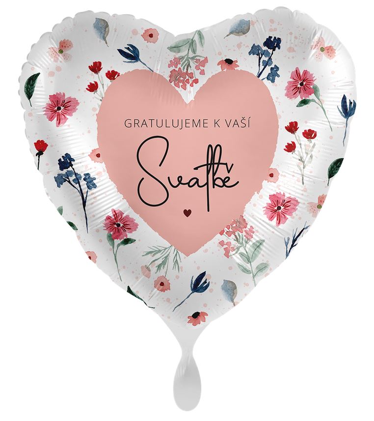 Srdce Gratulace ke svatbě CZ - květiny 43cm - fóliový balónek