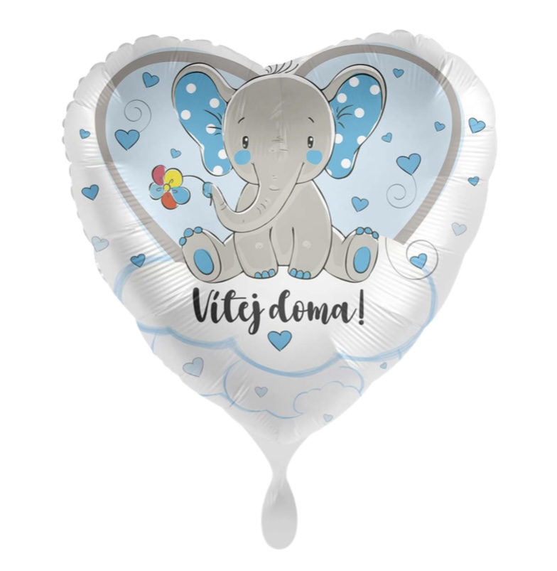 Srdce Vítej doma! Sloník modrý CZ 43 cm - fóliový balónek