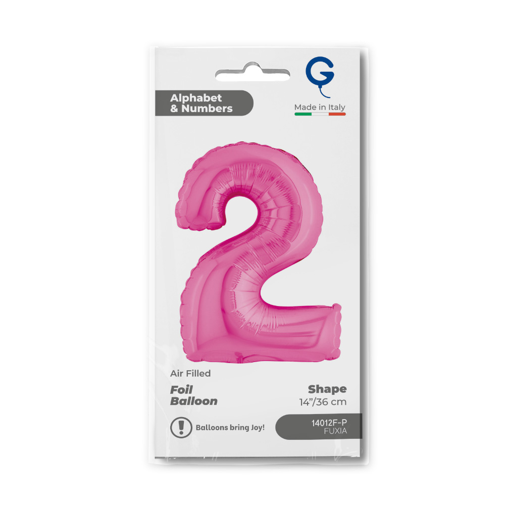 Foliový balónek ve tvaru číslice 2 ve fuchsia barvě. Balonky jsou baleny v prodejním balení.
