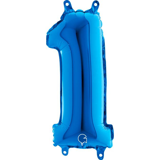 Foliový balónek ve tvaru číslice 1 v modré barvě. Balonky jsou baleny v prodejním balení.