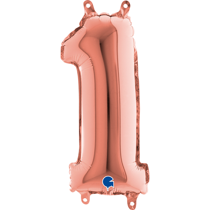 Foliový balónek ve tvaru číslice 1 v rosegold barvě. Balonky jsou baleny v prodejním balení.