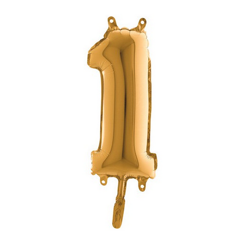 Foliový balónek ve tvaru číslice 1 ve zlaté barvě.