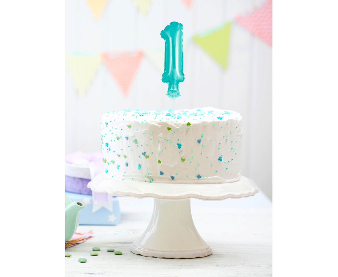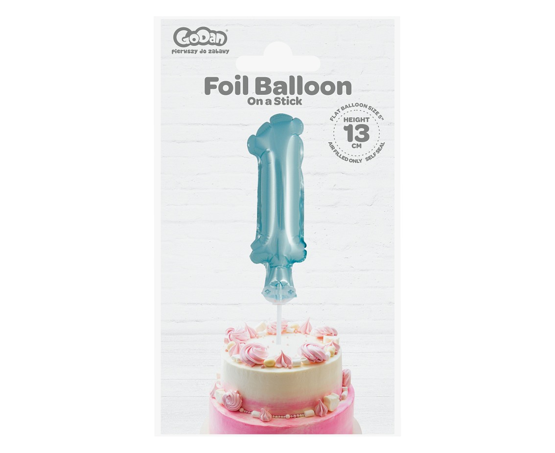 Foliový balónek ve tvaru číslice 1 ve světle modré barvě. Balonky jsou baleny v prodejním balení. Vhodné i na dort!