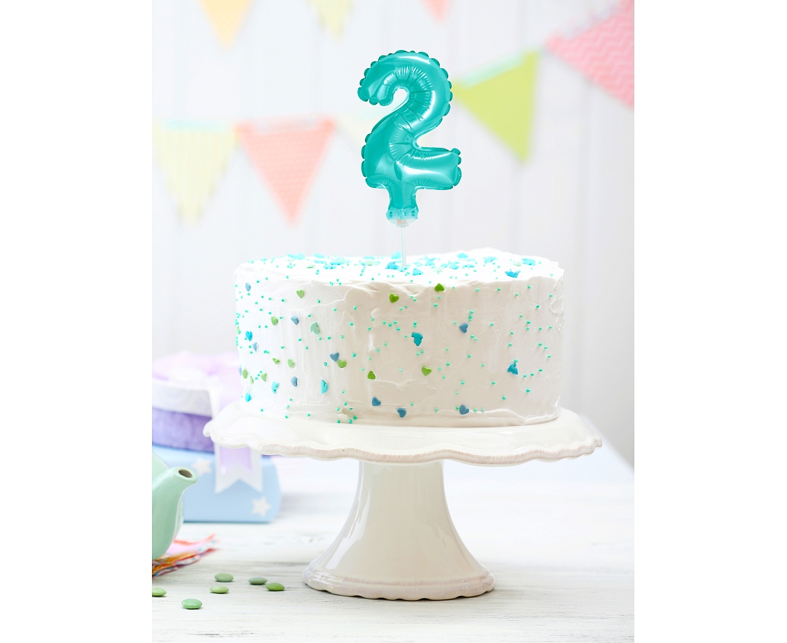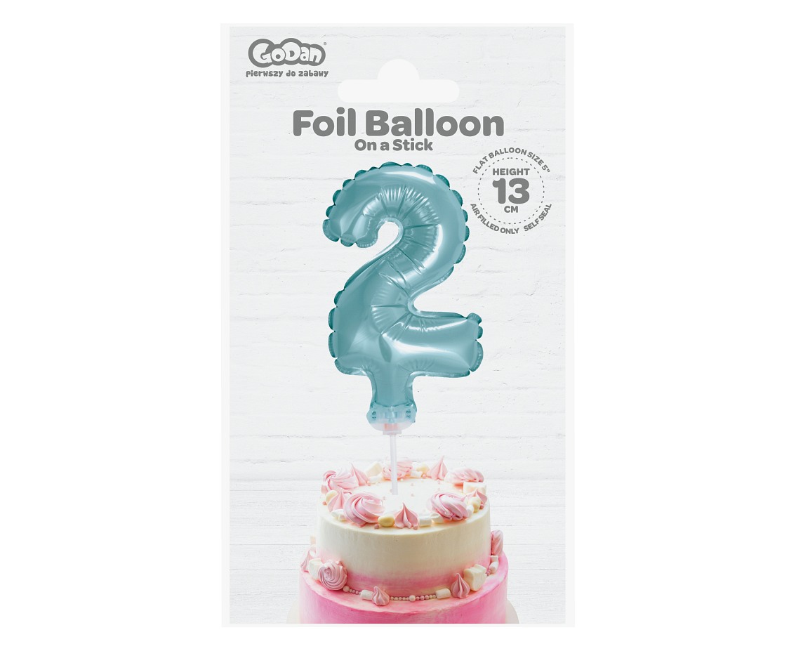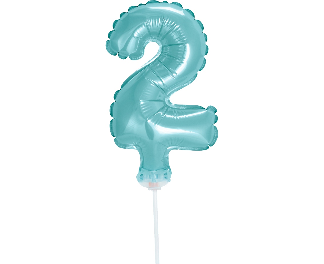 Foliový balónek ve tvaru číslice 2 ve světle modré barvě. Balonky jsou baleny v prodejním balení. Vhodné i na dort!
