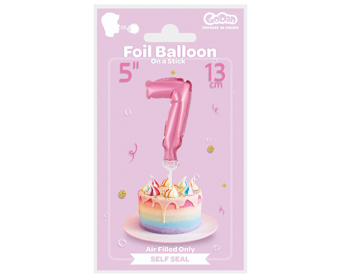 Foliový balónek ve tvaru číslice 7 ve světle růžové barvě. Balonky jsou baleny v prodejním balení. Vhodné i na dort!