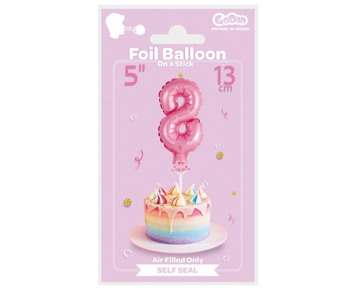 Foliový balónek ve tvaru číslice 8 ve světle růžové barvě. Balonky jsou baleny v prodejním balení. Vhodné i na dort!