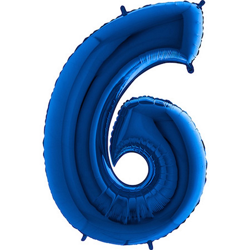 Fóliový balónek číslice 6 v modré barvě je velký 102 cm a je vhodným doplňkem výroční, novoroční i narozeninové výzdoby.