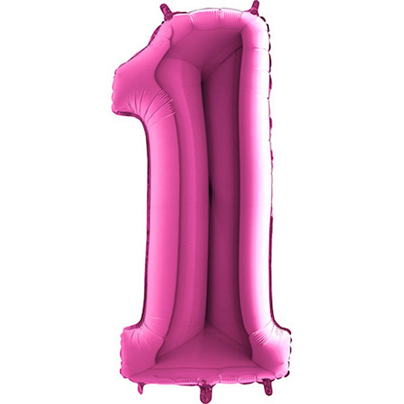 Fóliový balónek číslice 1 v růžové barvě je velký 102 cm a je vhodným doplňkem výroční, novoroční i narozeninové výzdoby.