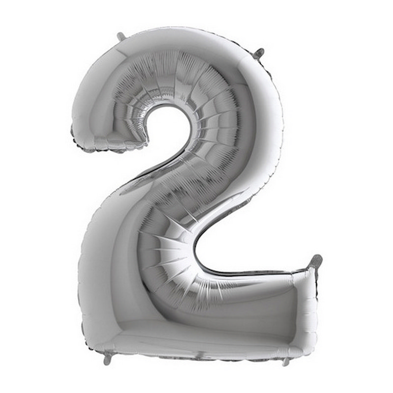 Fóliový balónek číslice 2 ve stříbrné barvě je velký 102 cm a je vhodným doplňkem výroční, novoroční i narozeninové výzdoby.
