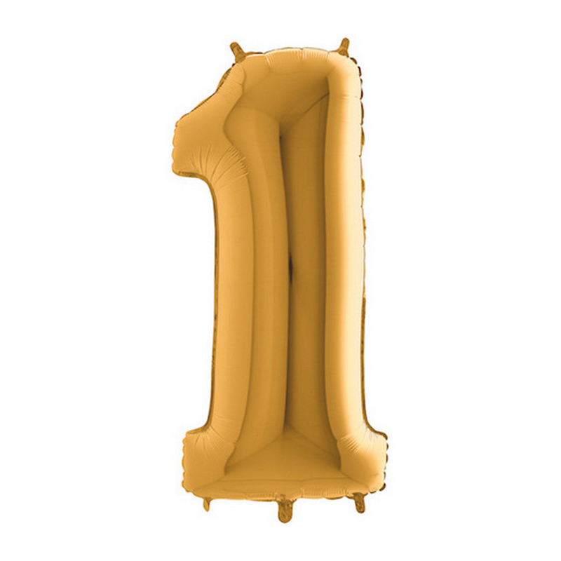 Fóliový balónek číslice 1 ve zlaté barvě je velký 102 cm a je vhodným doplňkem výroční, novoroční i narozeninové výzdoby.
