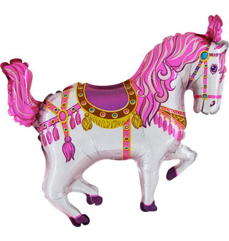 Fóliový balónek znázorňuje cirkusového koníka v růžové barvě. Tyto balónky jsou určeny k uvázání na tyčku s kloboučkem, k nafukování heliem nejsou vhodné.