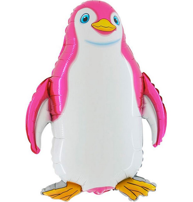 Fóliový balónek znázorňuje tučňáka v růžové barvě. Tyto balónky jsou určeny k uvázání na tyčku s kloboučkem, k nafukování heliem nejsou vhodné.