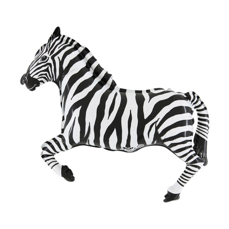 Fóliový balónek znázorňuje zebru v černé barvě. Tyto balónky jsou určeny k uvázání na tyčku s kloboučkem, k nafukování heliem nejsou vhodné.