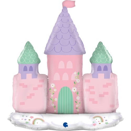 Foliový balónek ve tvaru hradu, který sám stojí po nafouknutí vzduchem.