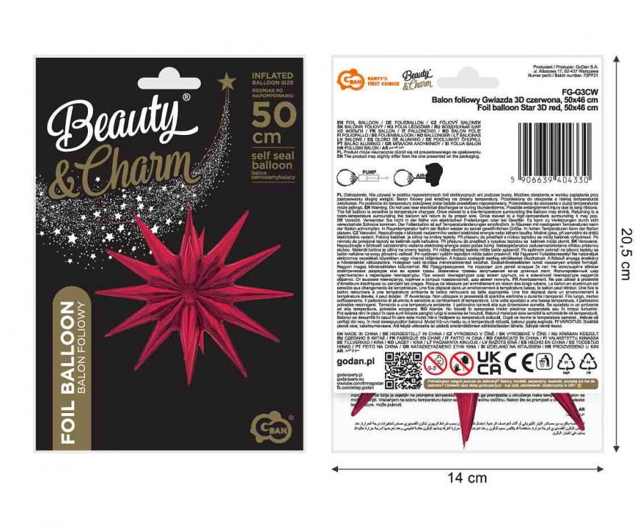 Deschberoucí 3D hvězda o velikosti 50x46cm. Balónek je vhodný pro nafukování vzduchem.