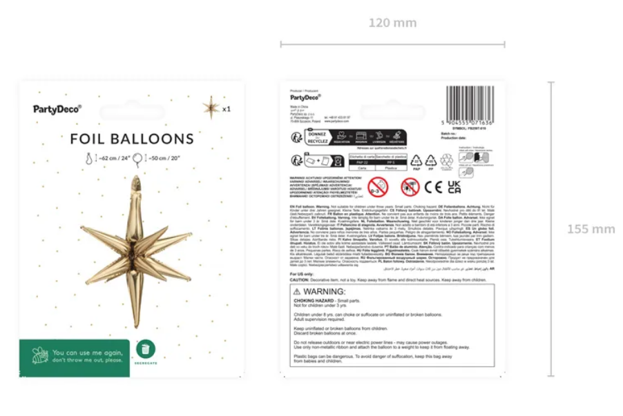 RFG-G3ZL | Hvězda 3D zlatá 50x46cm - fóliový balónek |