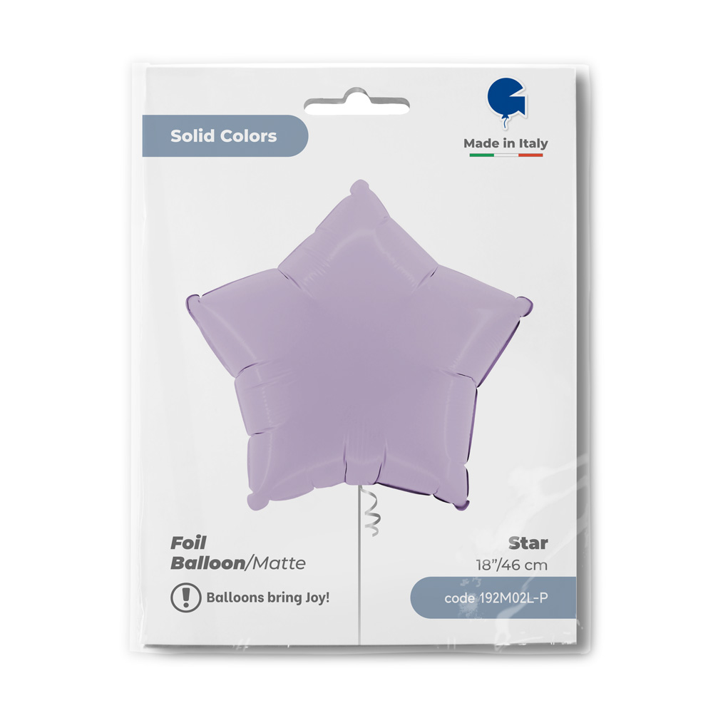 Foliový balónek v liliové barvě ve tvaru hvězdy, výška 46cm. Vhodné pro nafukování heliem i vzduchem.