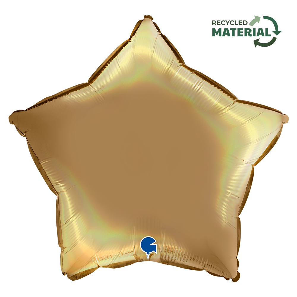 Foliový balónek v saténově zlaté barvě ve tvaru hvězdy, výška 46cm. Vhodné pro nafukování heliem i vzduchem.