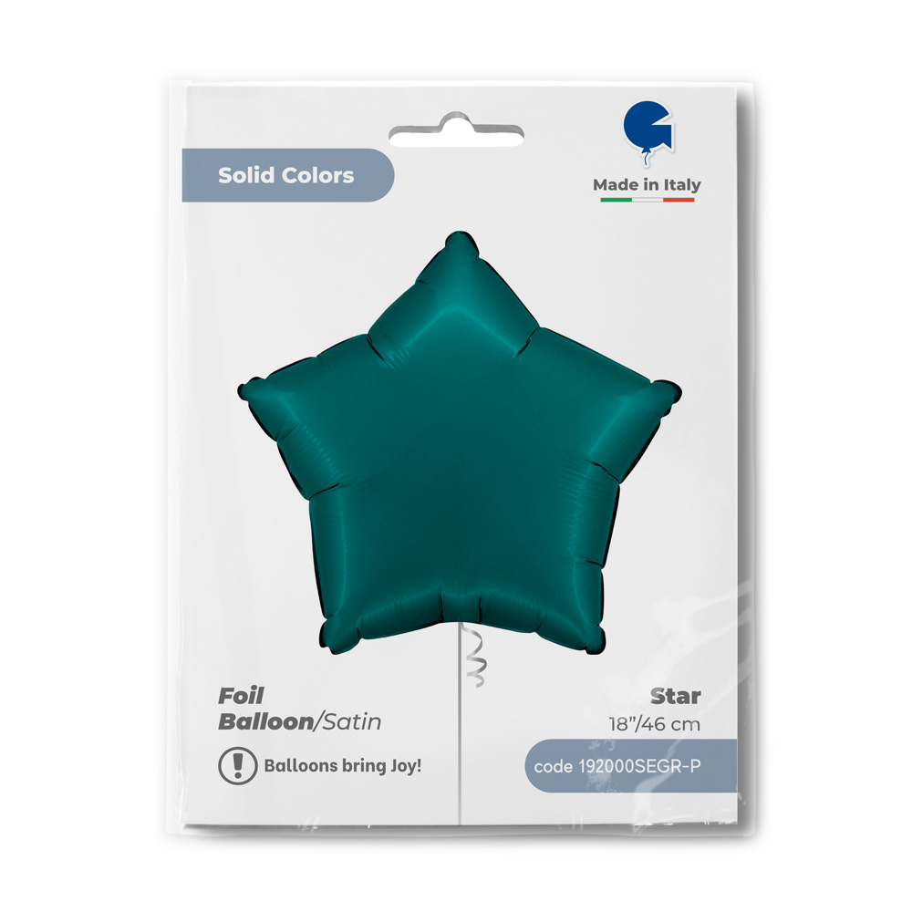 Foliový balónek v smaragdové barvě ve tvaru hvězdy, výška 46cm. Vhodné pro nafukování heliem i vzduchem.