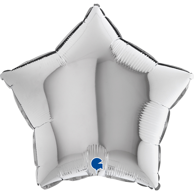 Foliový balónek ve stříbrné barvě ve tvaru hvězdy, výška 46cm. Vhodné pro nafukování heliem i vzduchem.