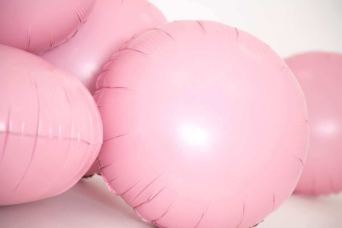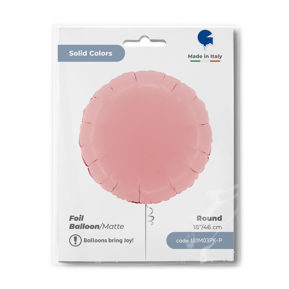 Foliový balónek v matně růžové barvě ve tvaru kruhu, výška 46cm. Vhodné pro nafukování heliem i vzduchem.