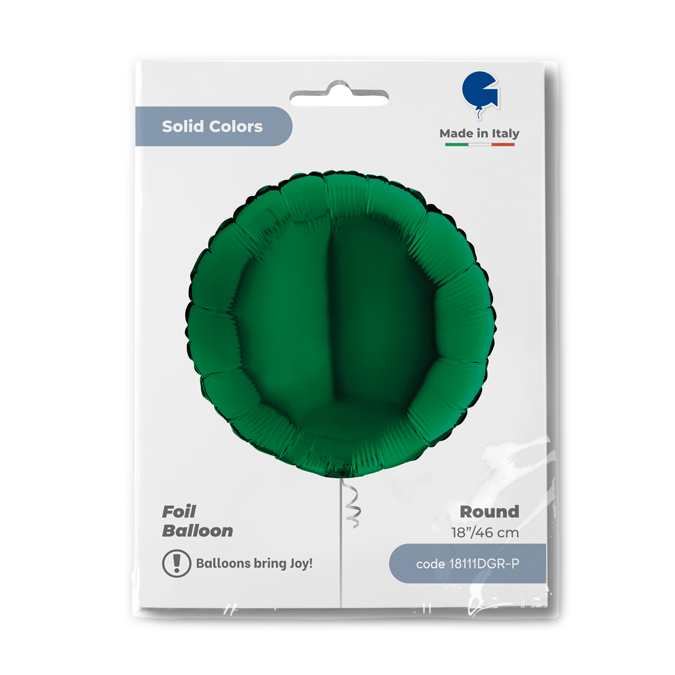 Foliový balónek v zelené barvě ve tvaru kruhu, výška 46cm. Vhodné pro nafukování heliem i vzduchem.
