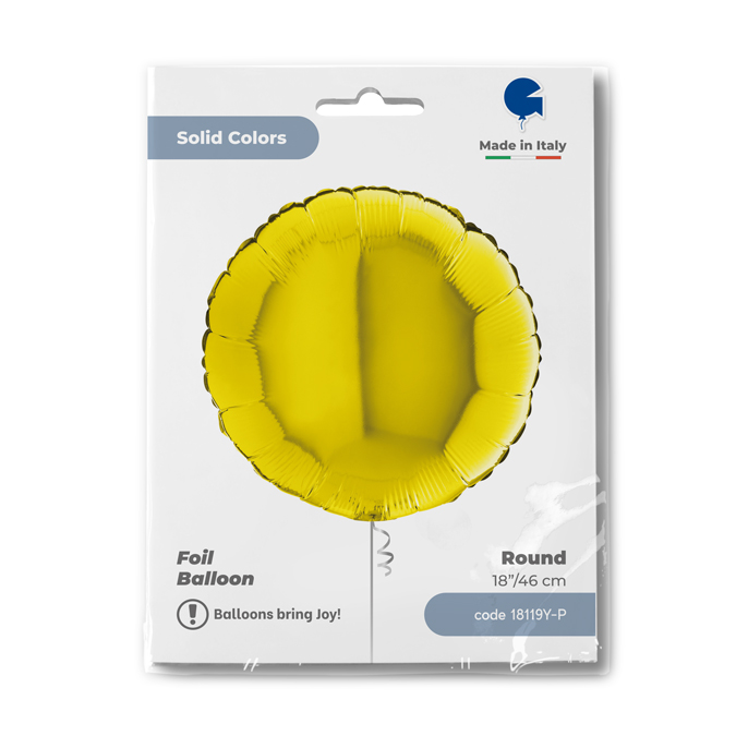 Foliový balónek ve tvaru kruhu ve žluté barvě.