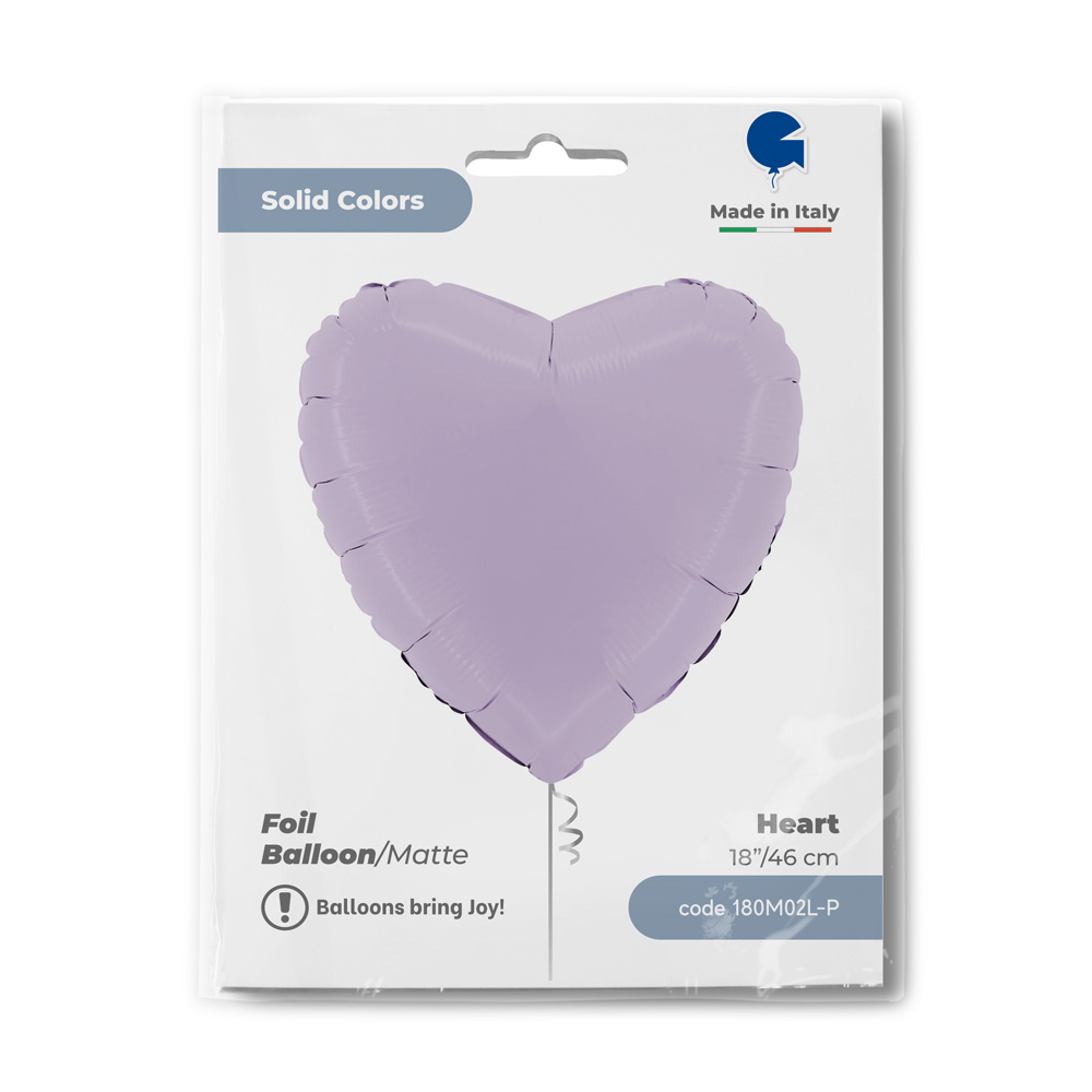 Foliový balónek ve světle matné liliové barvě ve tvaru srdce, výška 46cm. Vhodné pro nafukování heliem i vzduchem.
