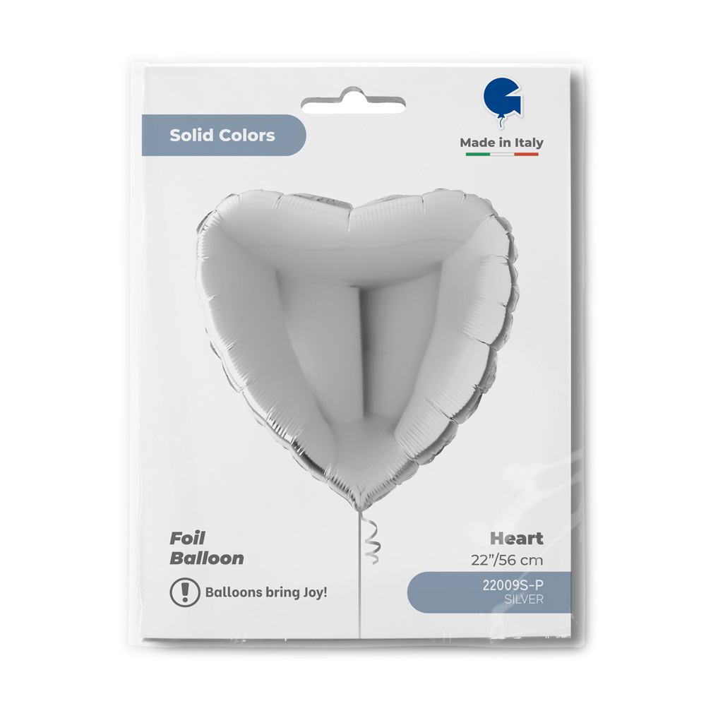 Foliový balónek ve stříbrné barvě ve tvaru srdce, výška 56cm. Vhodné pro nafukování heliem i vzduchem.
