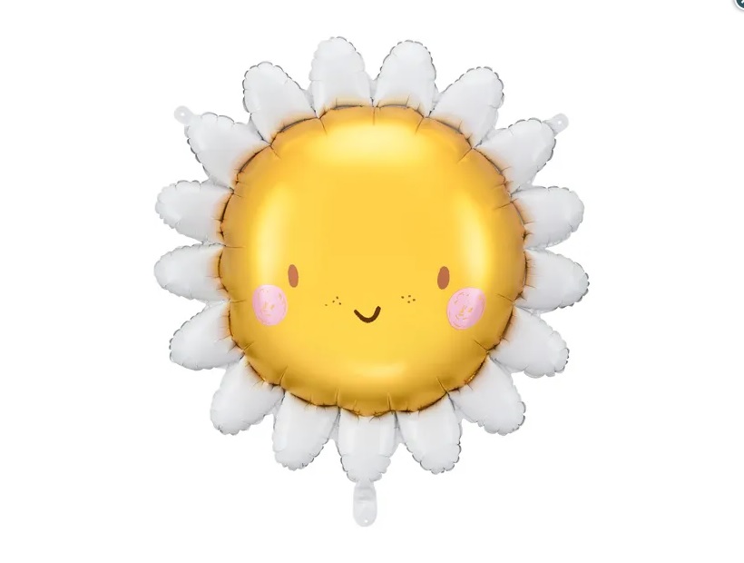 Foliový balónek ve tvaru slunce, o velikosti cca 90cm. Balónek je vhodný pro nafukování heliem i vzduchem.