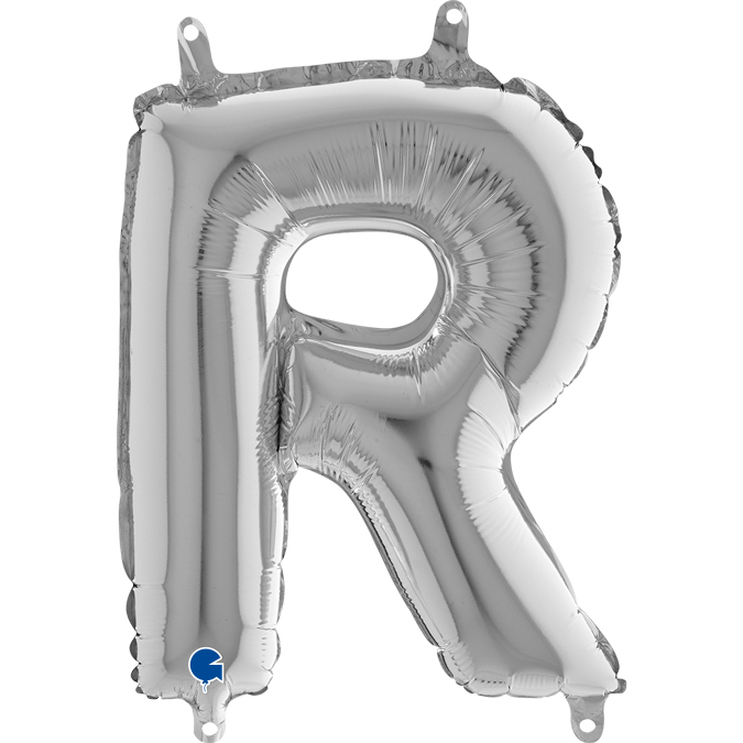 PÍSMENO STŘÍBRNÉ MINI R (35cm,14") fóliový balónek nafukovací
