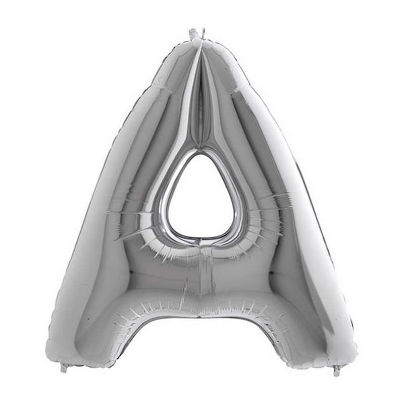 Stříbrné písmeno ve tvaru A, výška 102cm. Jsou vhodné pro nafukování heliem i vzduchem.