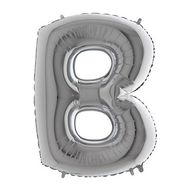 Stříbrné písmeno ve tvaru B, výška 102cm. Jsou vhodné pro nafukování heliem i vzduchem.