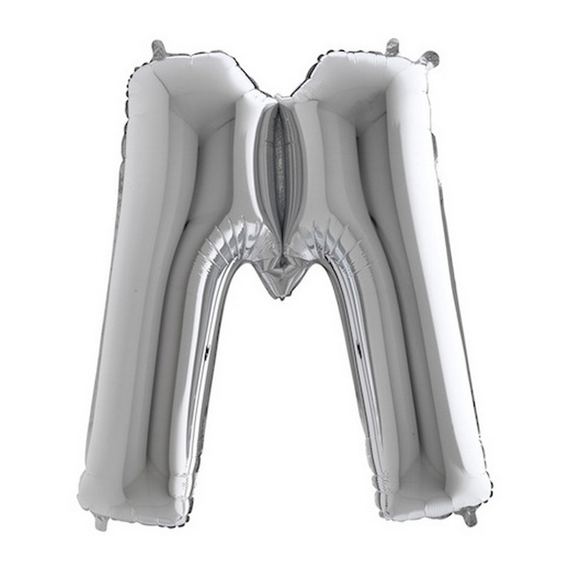 Stříbrné písmeno ve tvaru M, výška 102cm. Jsou vhodné pro nafukování heliem i vzduchem.