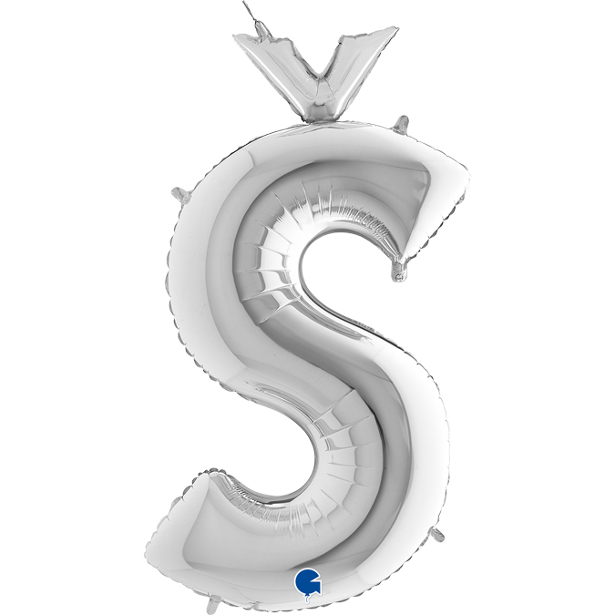 Stříbrné písmeno ve tvaru Š, výška 102cm. Jsou vhodné pro nafukování heliem i vzduchem.