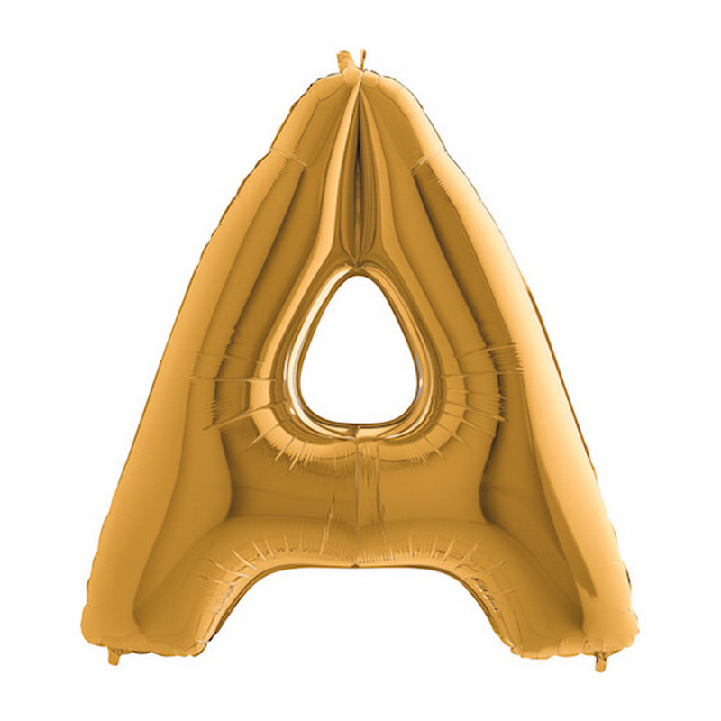 Zlaté písmeno ve tvaru A, výška 102cm. Jsou vhodné pro nafukování heliem i vzduchem.