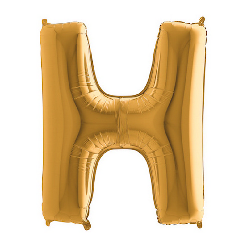 Zlaté písmeno ve tvaru H, výška 102cm. Jsou vhodné pro nafukování heliem i vzduchem.