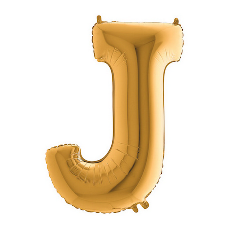 Zlaté písmeno ve tvaru J, výška 102cm. Jsou vhodné pro nafukování heliem i vzduchem.
