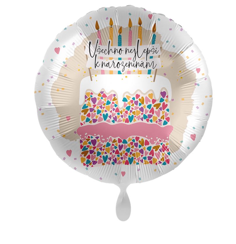 Fóliový balónek s plnobarevným českým potiskem s dortem.