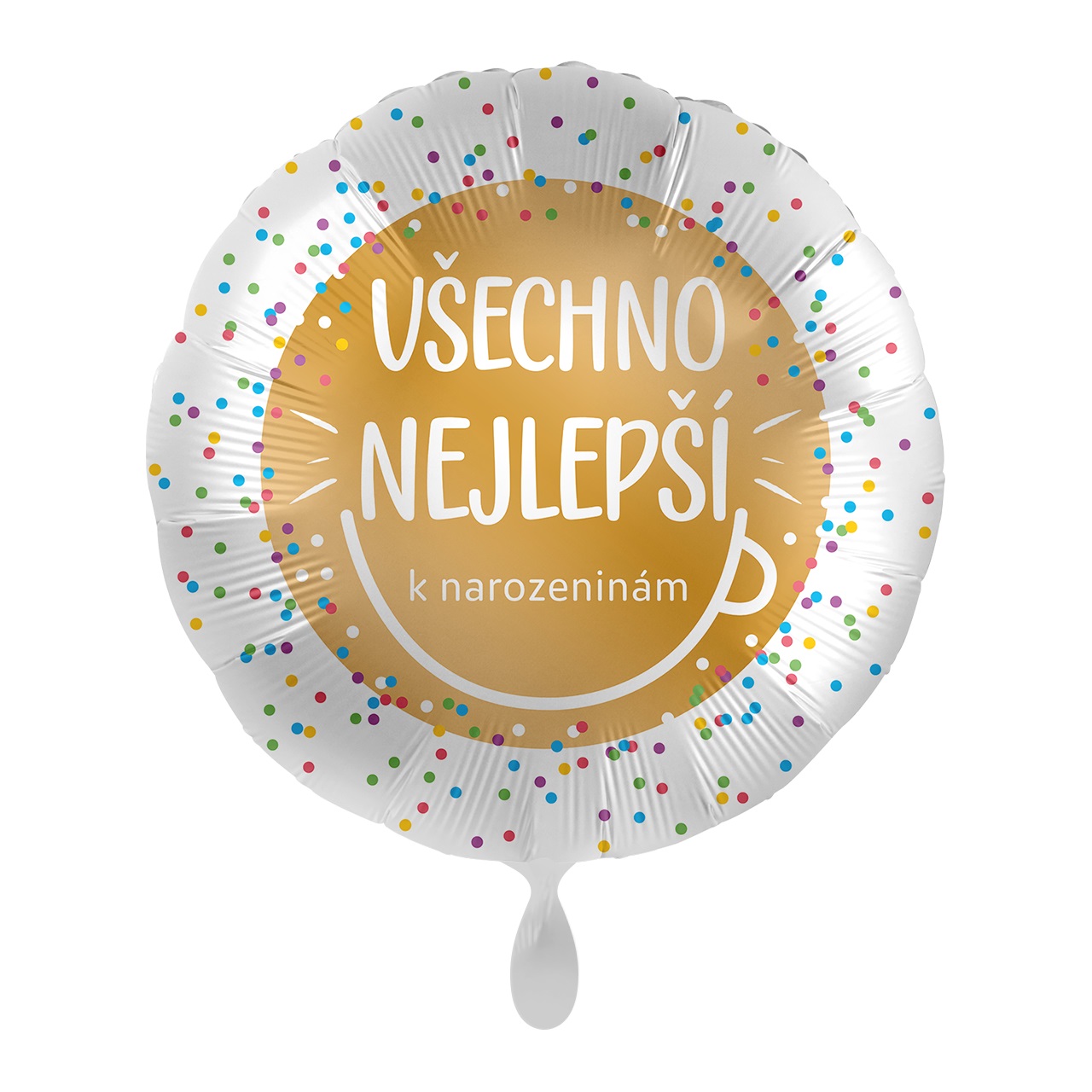 Fóliový balónek s plnobarevným českým potiskem s puntíky.