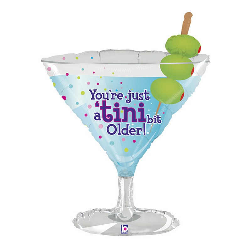 Foliový balónek ve tvaru Martini s nápisem "Jsi jen o trošku starší".