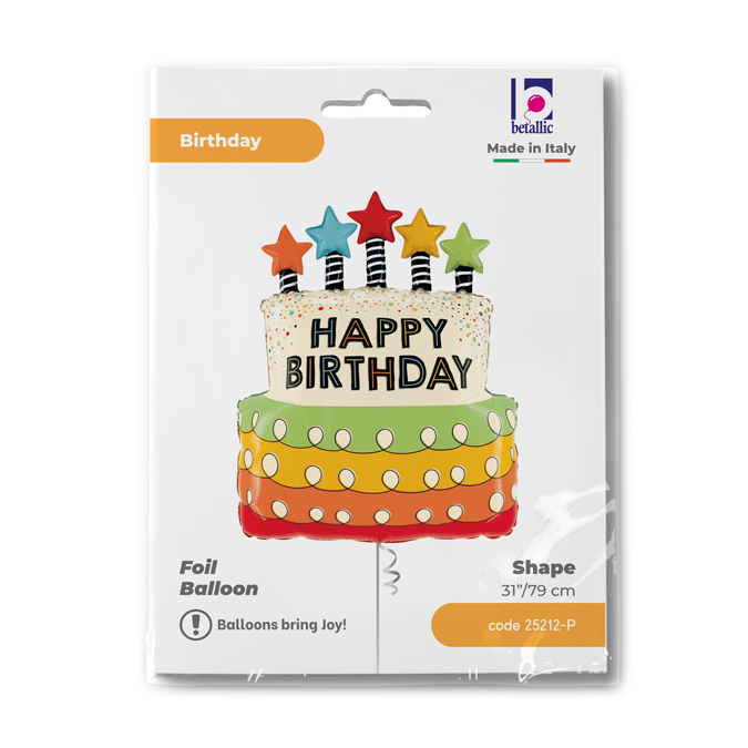 WG72019-P | Dort barevný HB a svíčky 23"/58cm fóliový balónek nafukovací |