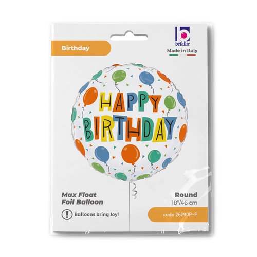 Foliový balónek ve tvaru kruhu s nápisem "Happy Birthday".