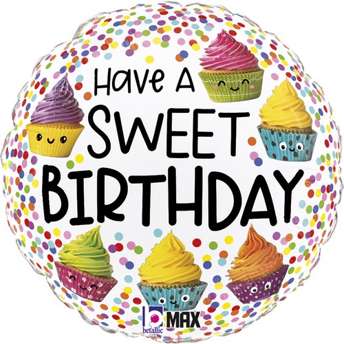 Kruh - Cupcake SWEET B-DAY 18"/46cm fóliový balónek nafukovací