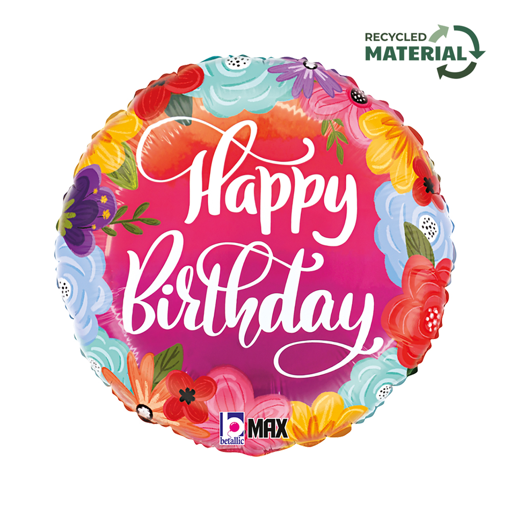 Kruh - Květiny HB 18"/46cm fóliový balónek nafukovací - 26366p-p-b.jpg
