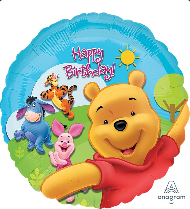 Foliový balónek ve tvaru kruhu s potiskem Medvídka Pú.
