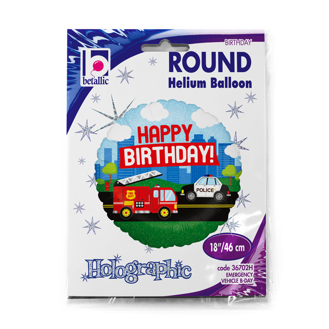 Foliový balónek ve tvaru kruhu s motivem záchranných složek a narozeninovým nápisem.