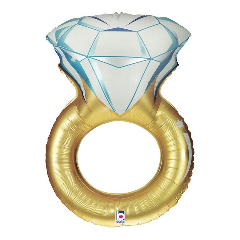 Foliový balónek ve tvaru zásnubního prstenu s diamantem.