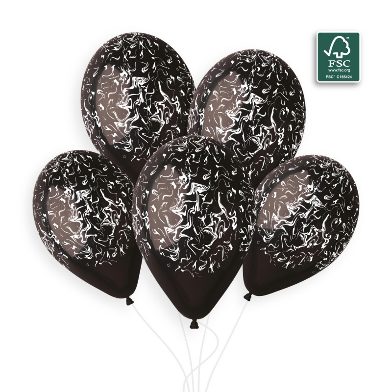 50ks černých balónků s potiskem bílého mramoru o průměru 33cm.