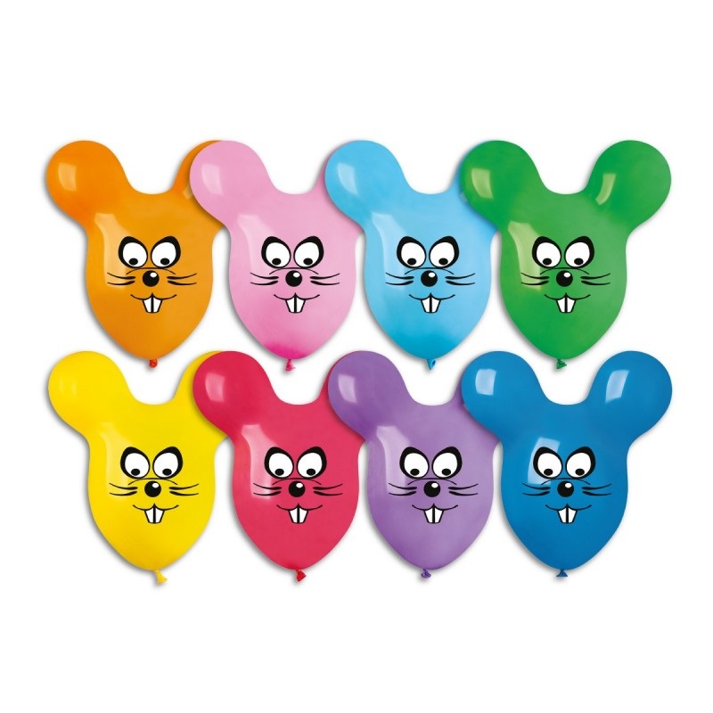 Balónek nafukovací myška s obličejem, mix pastelových barev se 100ks v balení.